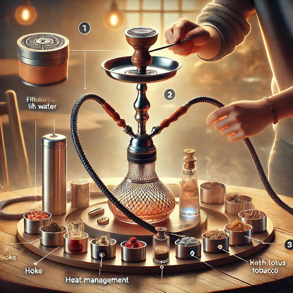 - חיבור הראש: הניחו את ראש הנרגילה, ודאו שהיא יציבה ולא נוטה ליפול.